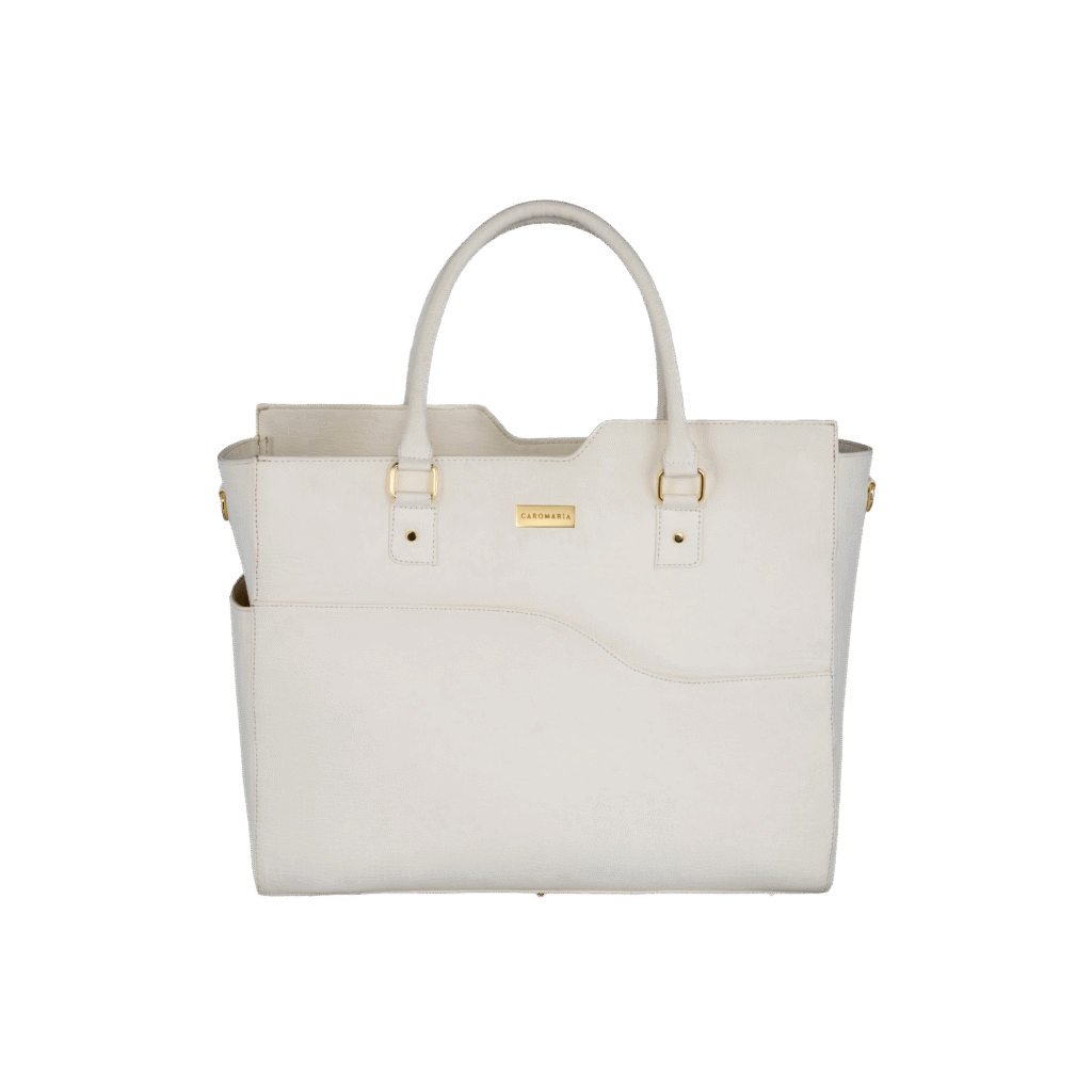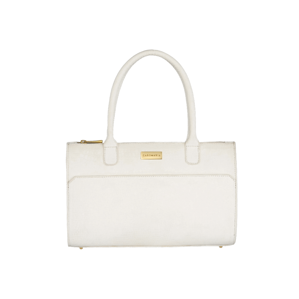 A spacious ivory tote with croc-textured detailing, crafted for modern professionals.