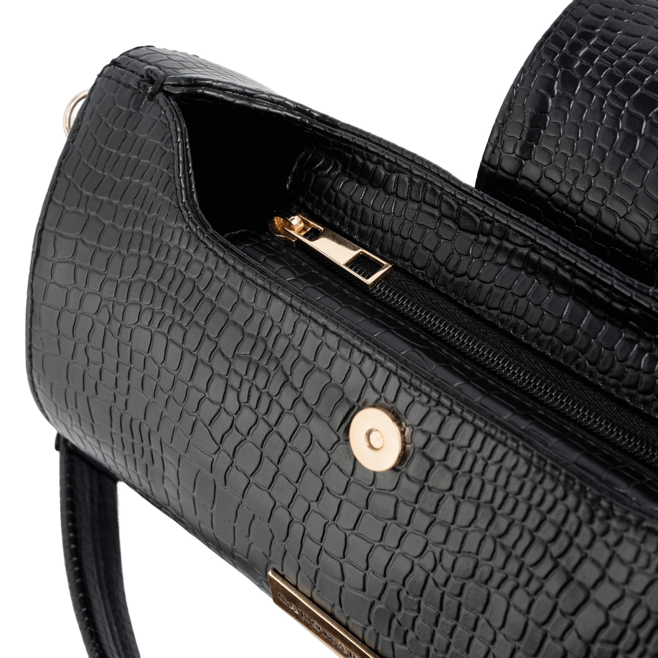 Handcrafted in premium micro-croco faux leather and lined with soft crepe.